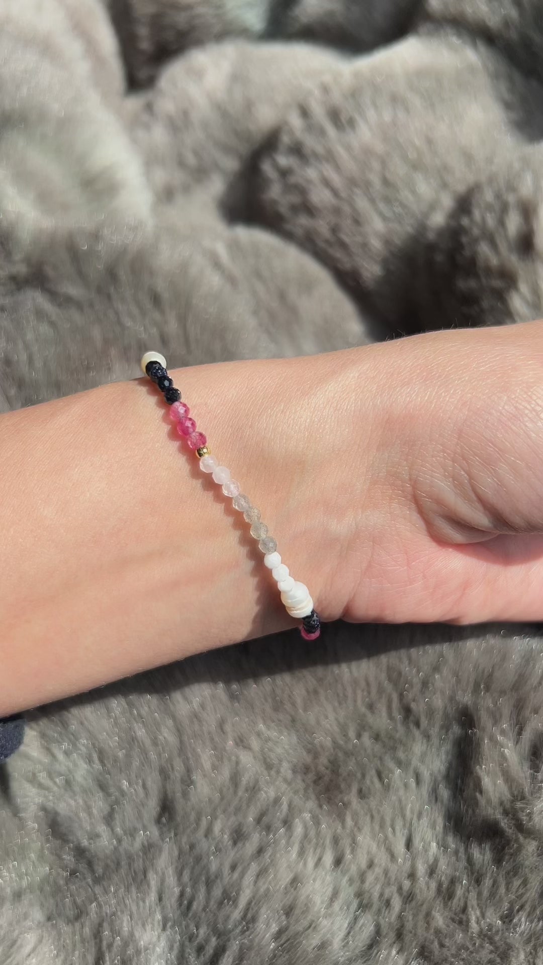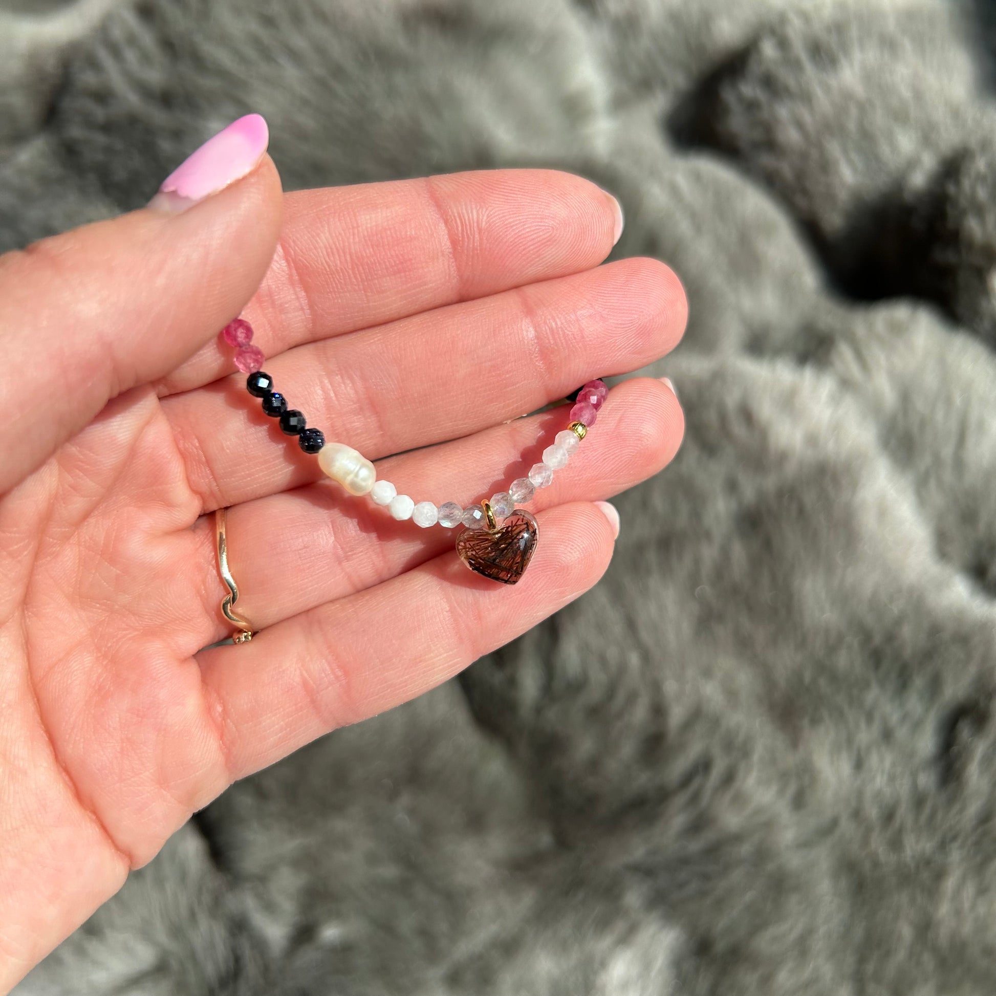 Armband aus Edelsteinen mit Fellanhänger - Erinnerungsschmuck