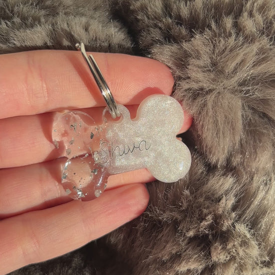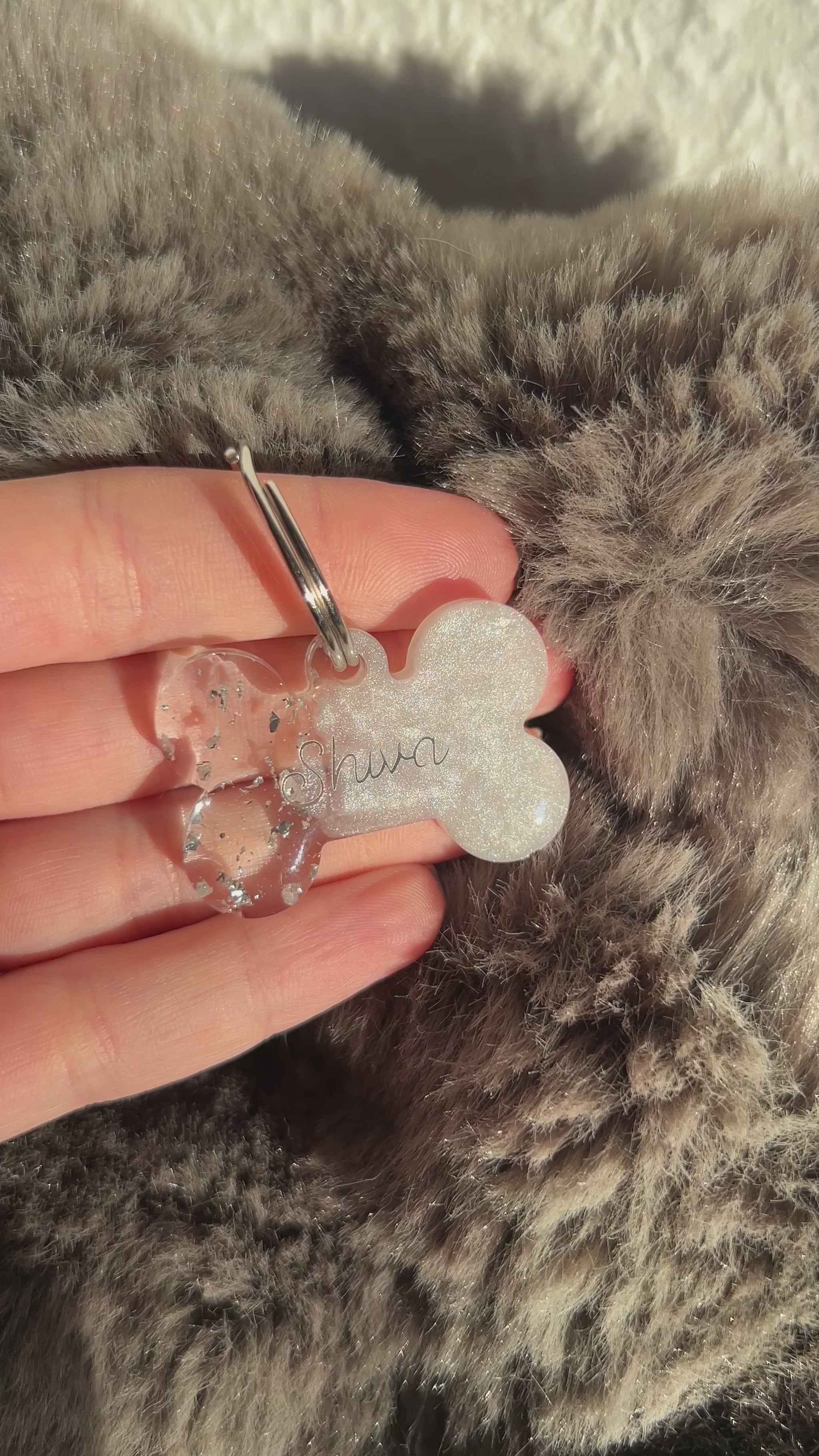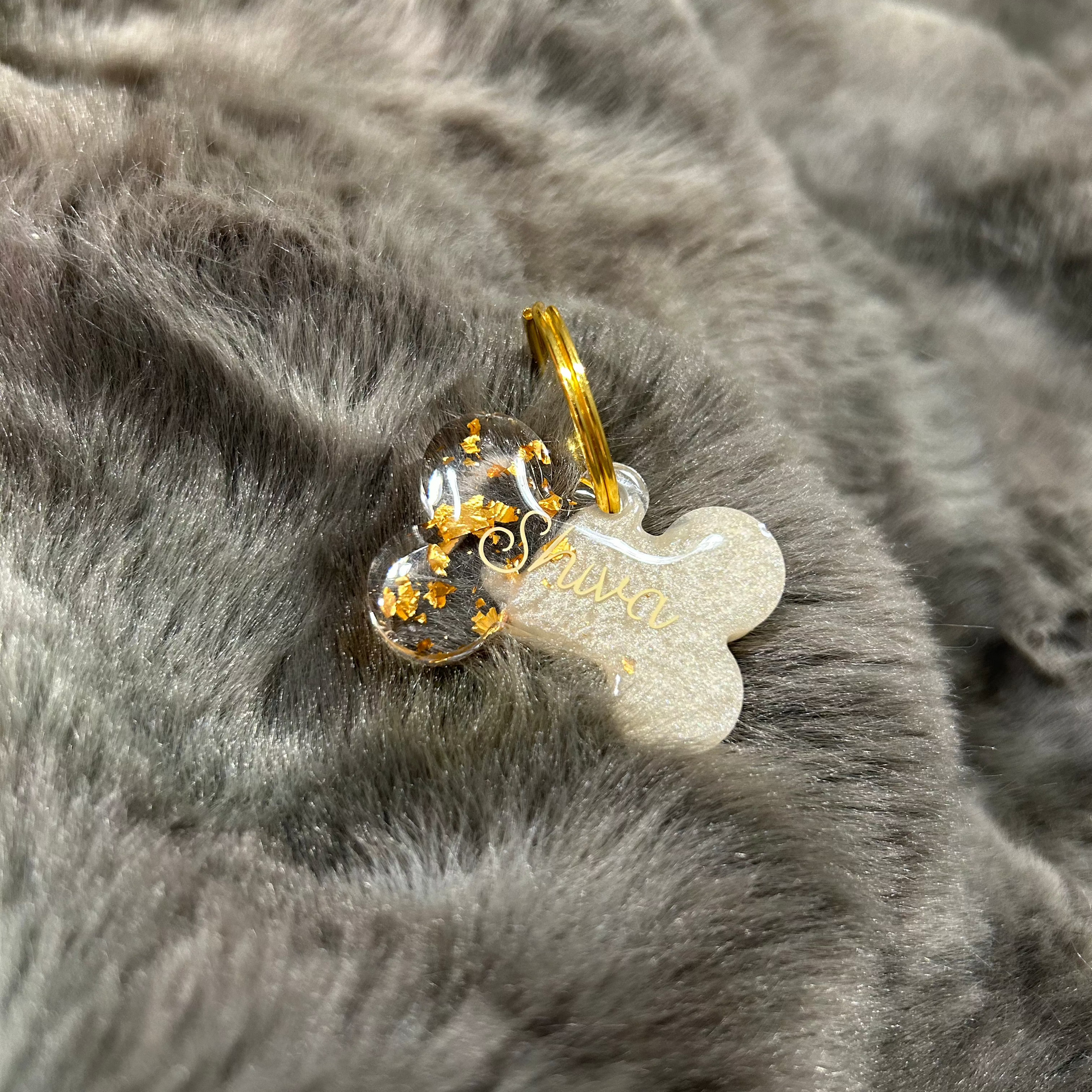 Diese individuell angefertigte Hundemarke aus Epoxidharz ist mit dem Namen deines Hundes personalisierbar. Perfekt für das Halsband und ein liebevolles Accessoire für deinen treuen Begleiter.