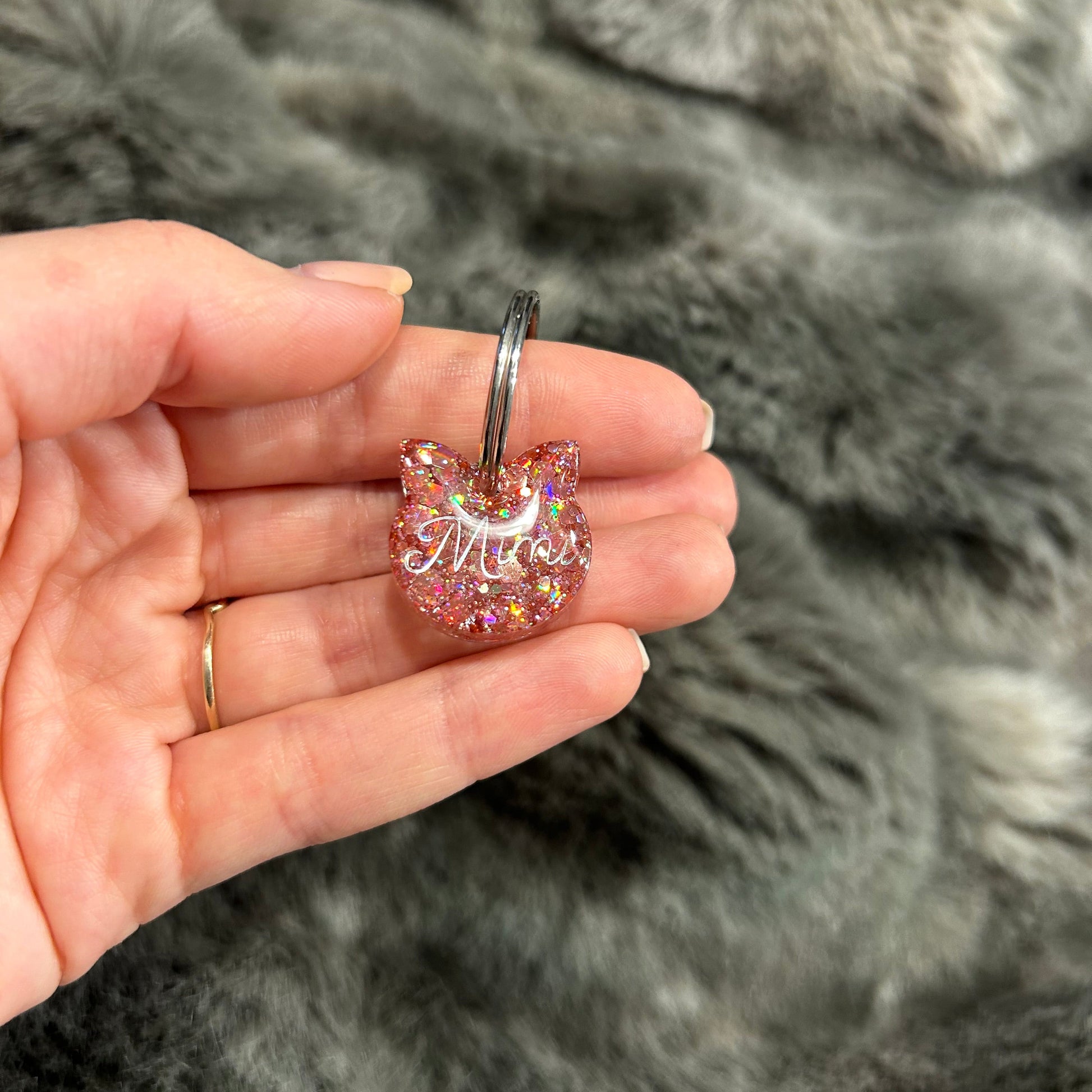 Diese süße Katzenmarke aus Epoxidharz ist individuell mit Namen personalisierbar. Sie eignet sich perfekt als stilvoller Anhänger für das Halsband deiner Katze. Jedes Stück ist ein handgefertigtes Unikat.